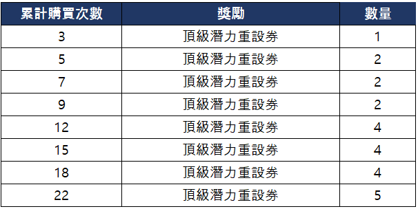 ▼ 潛力重設頂級禮包累計購買獎勵
