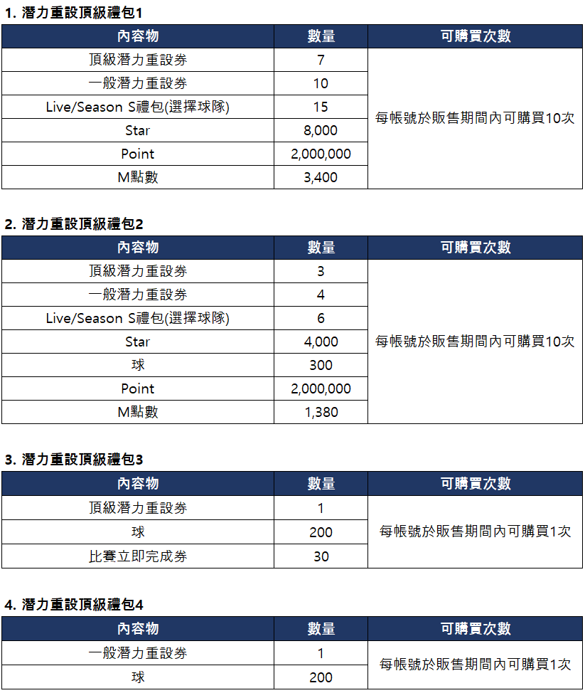 ■ 潛力重設頂級禮包上架通知