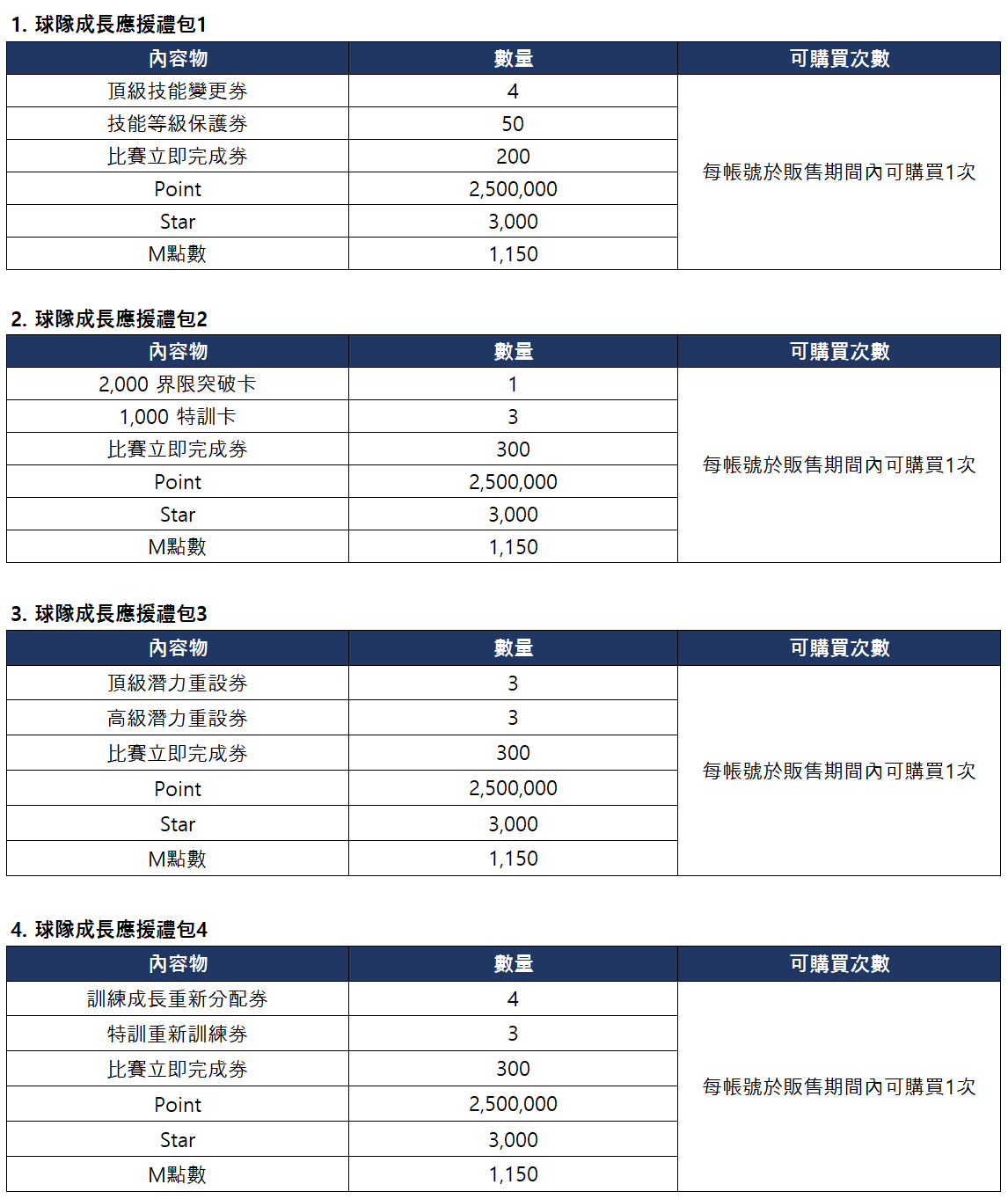 ■ 球隊成長應援禮包上架通知