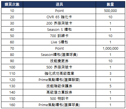 ※ 獲得最終獎勵後,將重置所有獎勵並可重複獲得獎勵。
