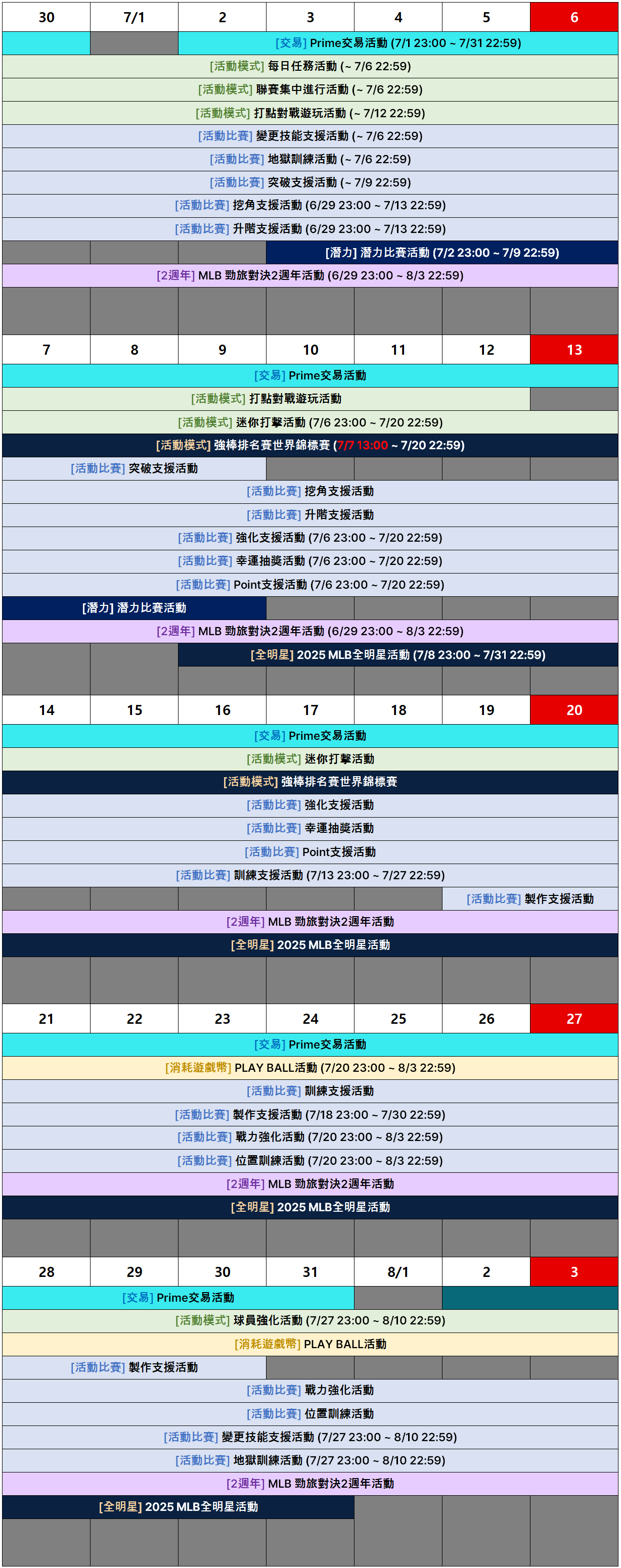 [活動] 7月遊戲活動日程通知(7月1日修復)