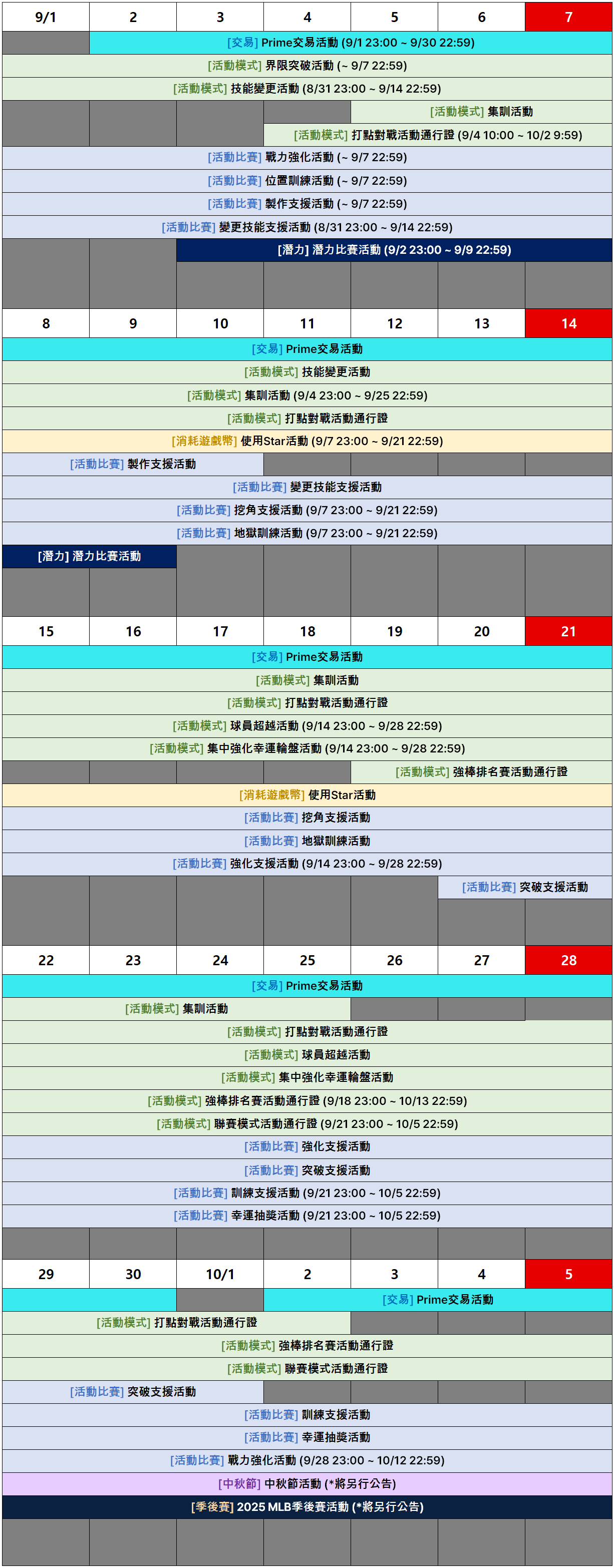 [活動] 9月遊戲活動日程通知(9月3日 16:00 修復)
