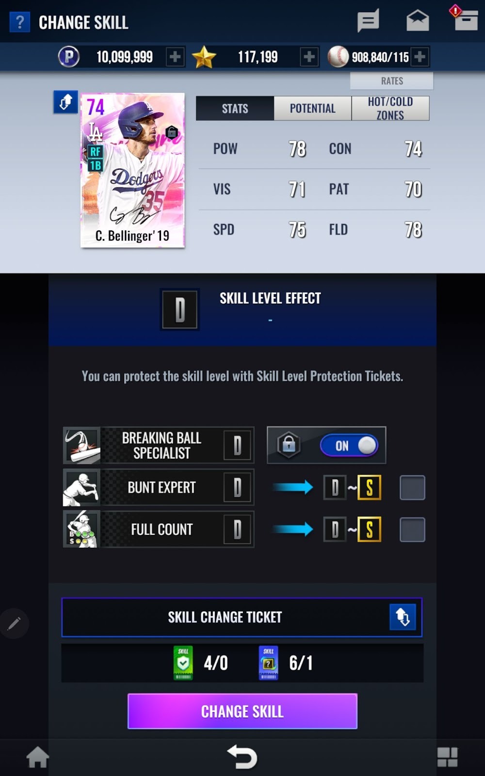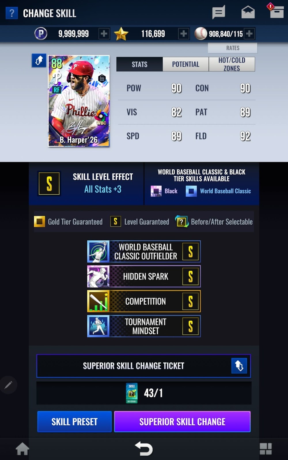 - World Baseball Classic卡片依等級不同,訓練突破階段上限亦有所差異。