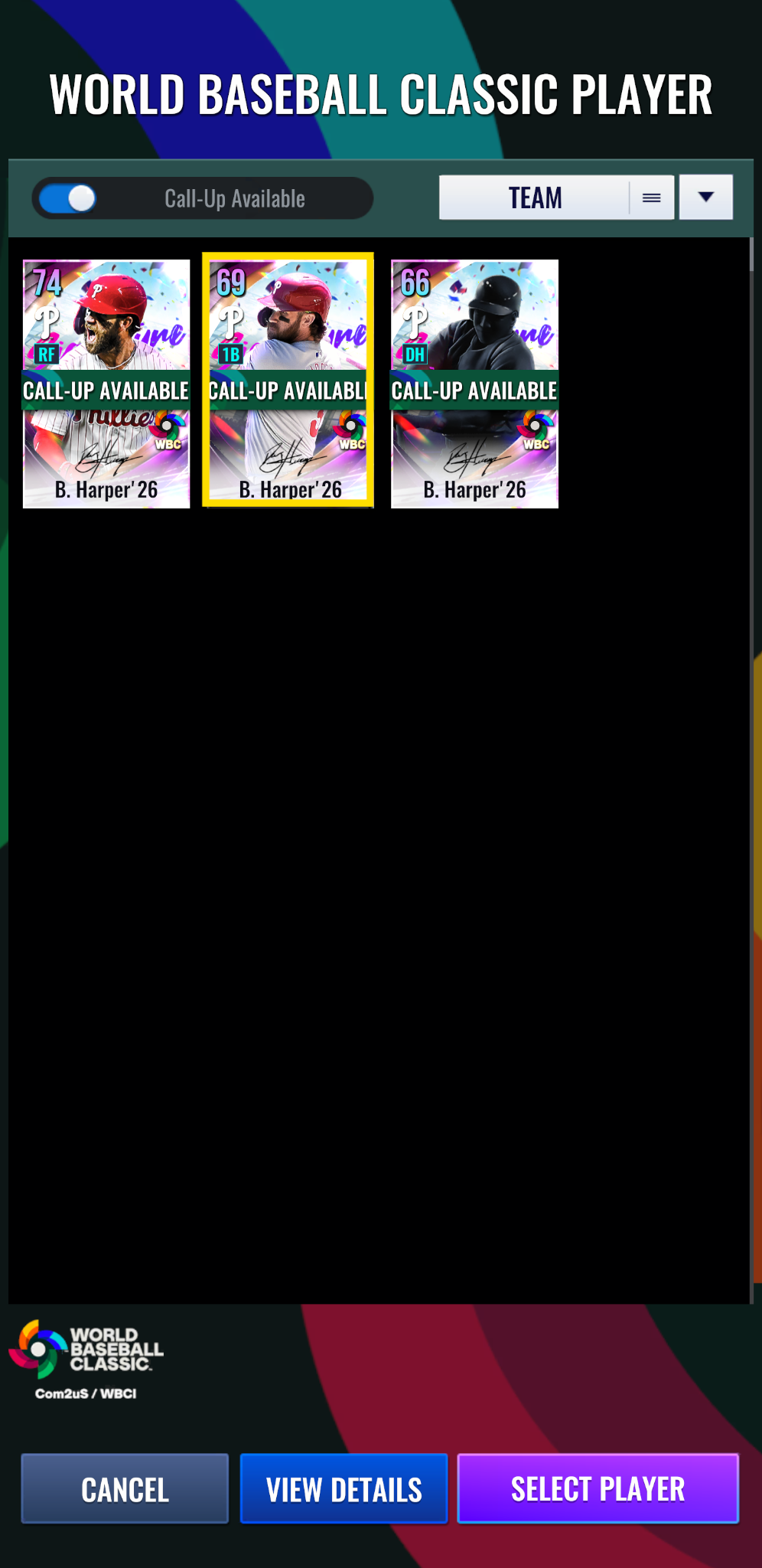 World Baseball Classic卡片類似FA卡,將套用所有球隊的首選球隊效果。