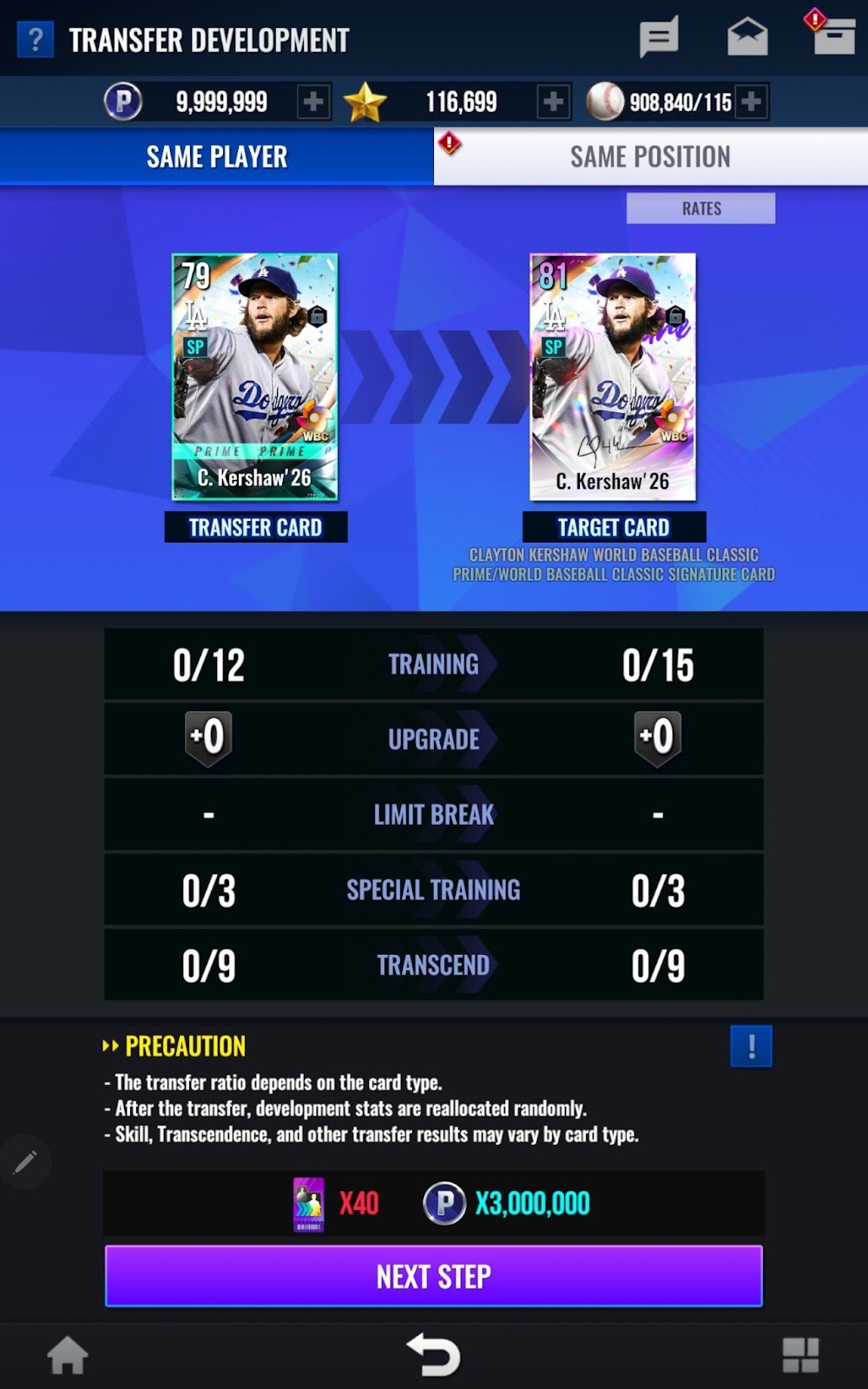 例) World Baseball Classic Signature卡將套用與FA Signature相同的訓練經驗值量