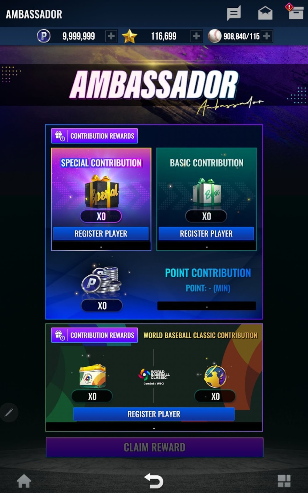 - 於World Baseball Classic代言人中可登錄World Baseball Classic球員卡,並獲得「Ultimate代幣」及「World Baseball Classic強化材料箱」。
