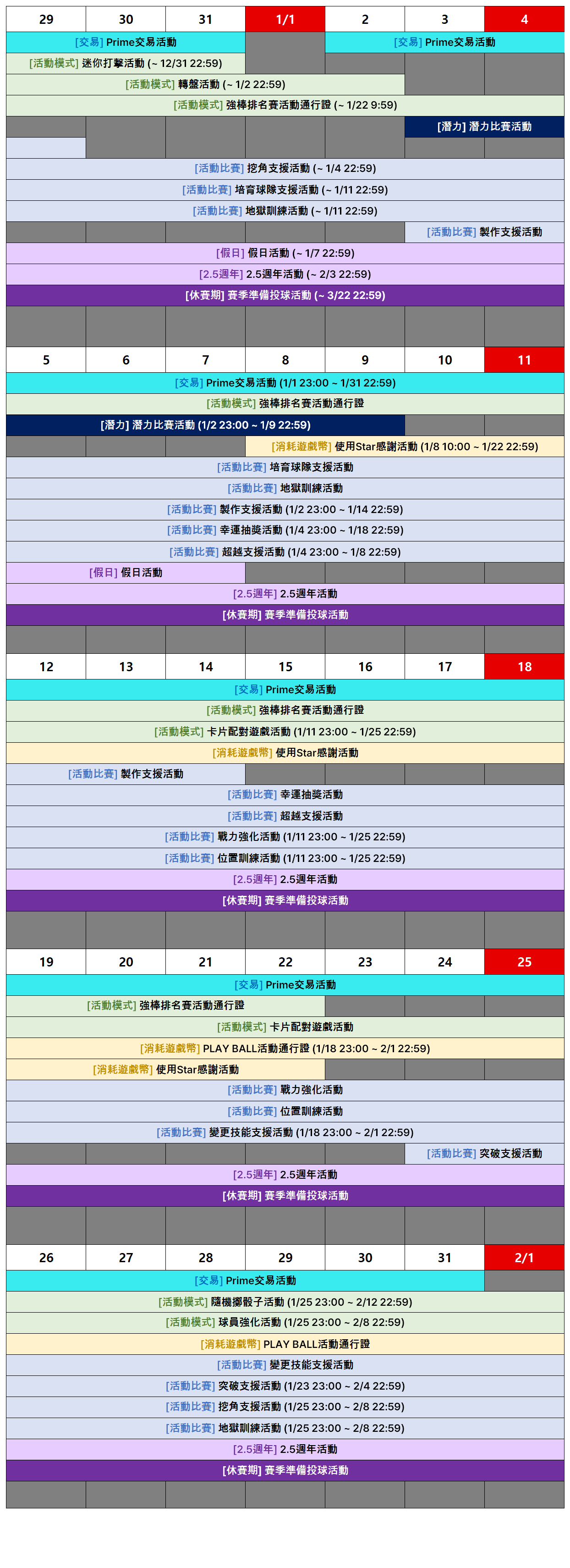 [活動] 1月遊戲活動日程通知 (1月23日 18:00 新增內容)