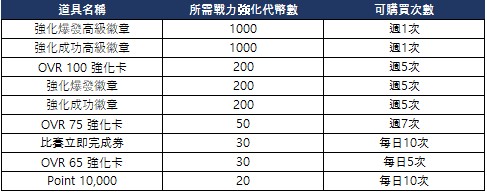- 可使用強化代幣強化球員卡或在活動商店中購買道具。