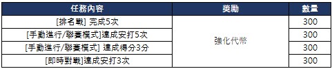 ※ 完成任務後,請務必於任務重置前領取強化代幣。逾期將無法領取。