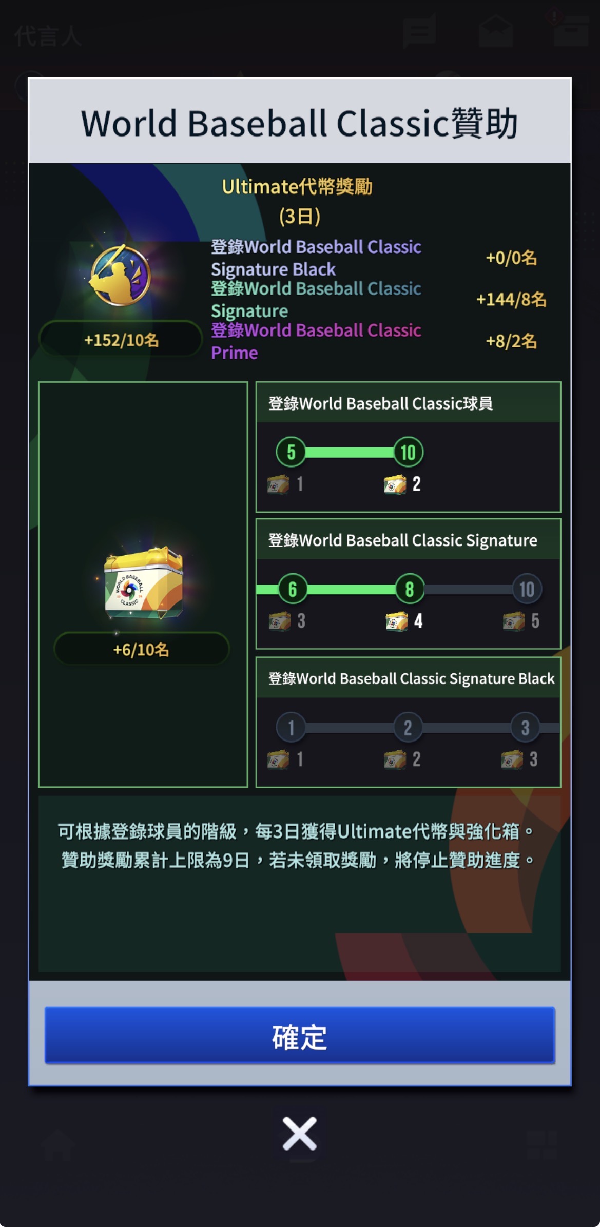WBC簽卡數量與給予的強化箱數量不同