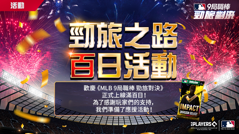 ■ 《MLB 9局職棒 勁旅對決》上線滿百日紀念!為我的強大球隊入手強化成功徽章、高級訓練突破券、Impact禮包(選擇地區)等道具吧!