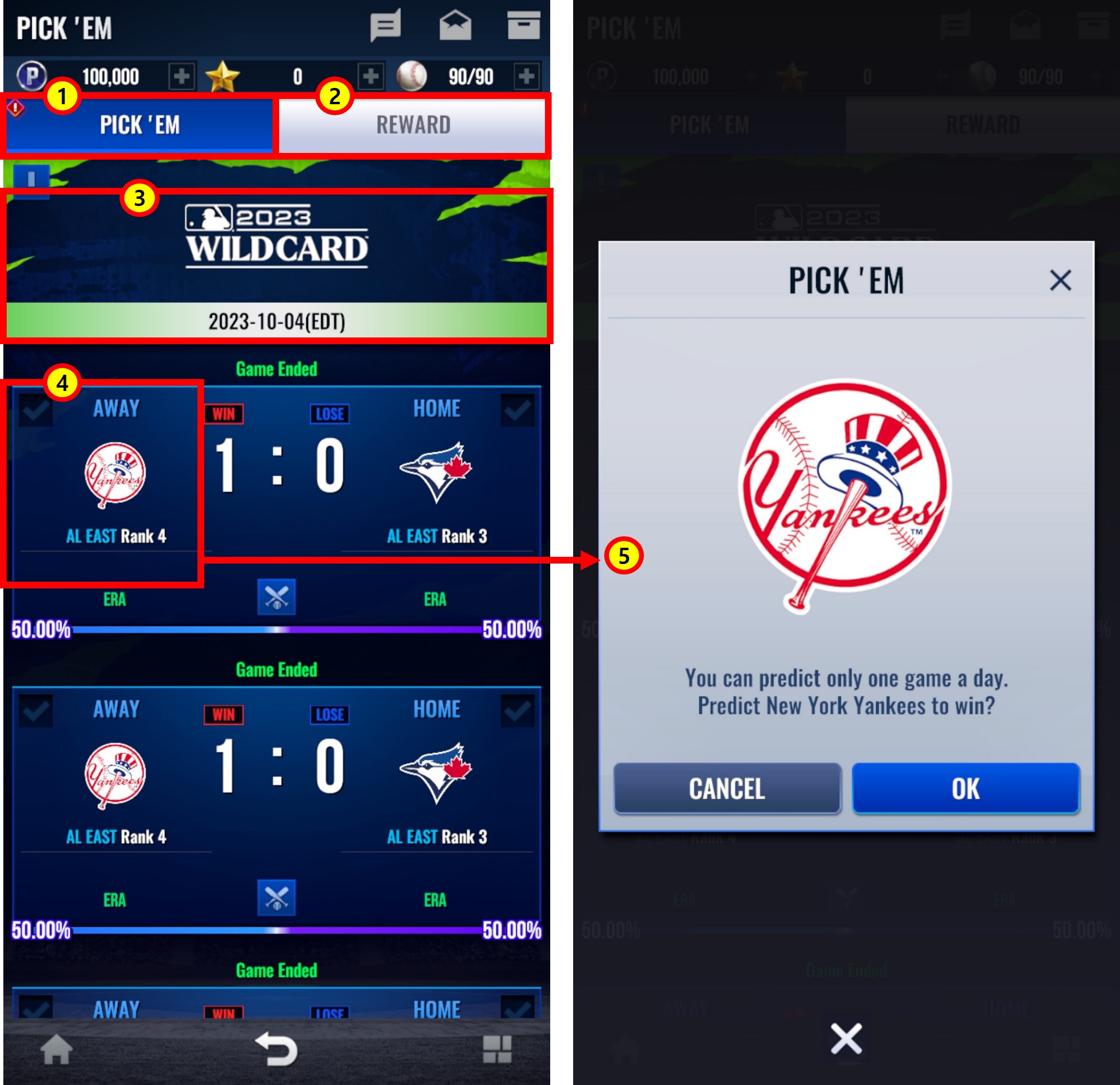 - 當日進行的AL及NL的所有比賽中,僅限預測1場比賽。