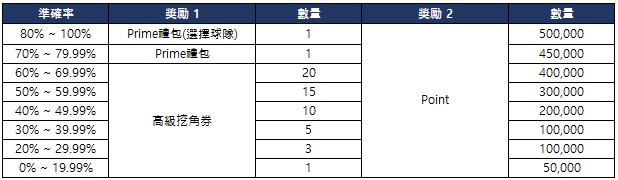 ※ 將根據勝負預測成功率的百分比範圍發送預測成功獎勵。