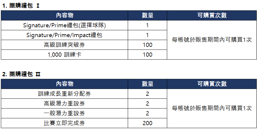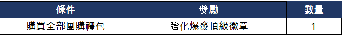 - 購買全部團購禮包1、2時,將獲得額外獎勵。