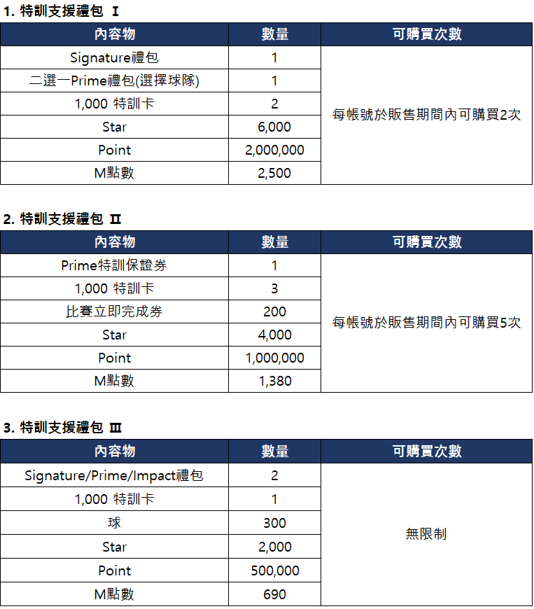 ■ 特訓支援禮包上架通知