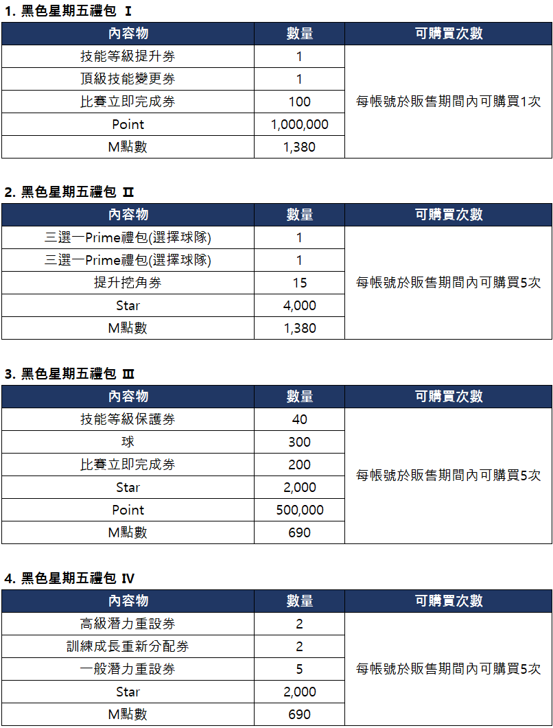 - 根據黑色星期五禮包累計購買次數,將可獲得以下獎勵。