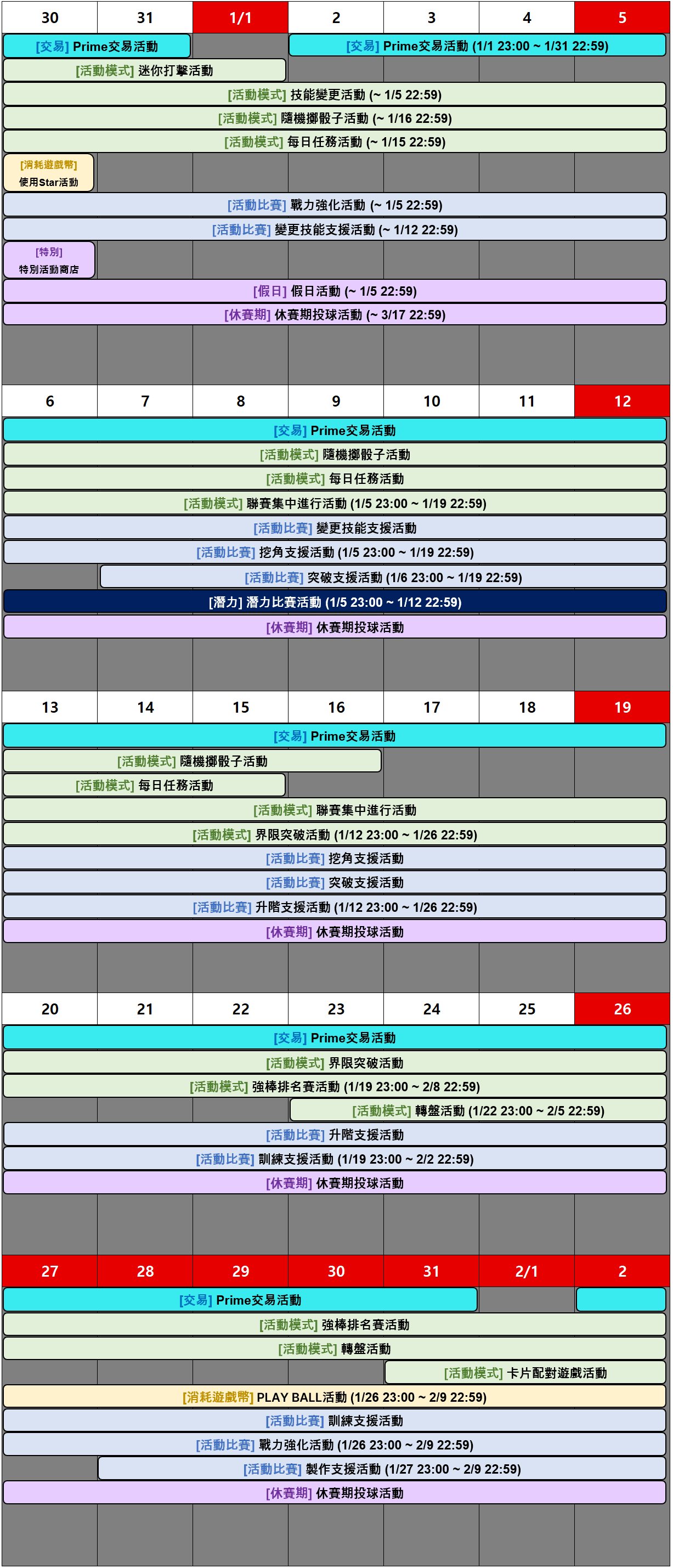 請參考下方1月遊戲活動日程。