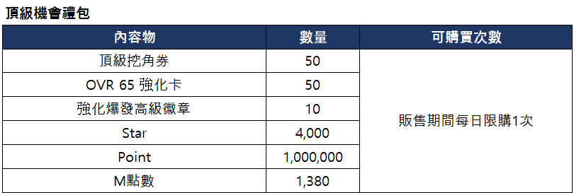 - 限購次數 : 每日1次 (販售期間限購5次)