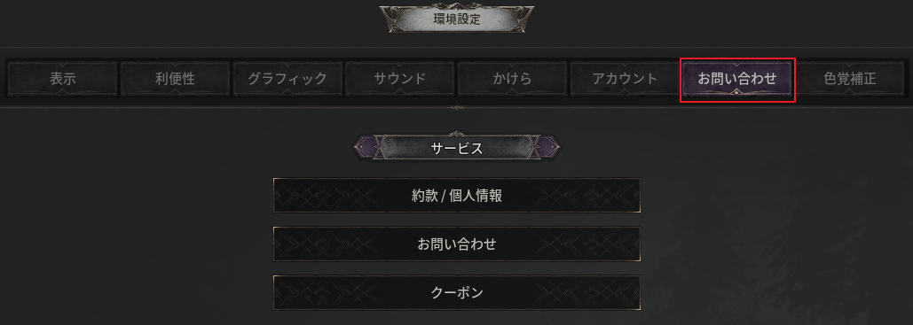 - ゲームメニューの最下部にある サービス カテゴリから、