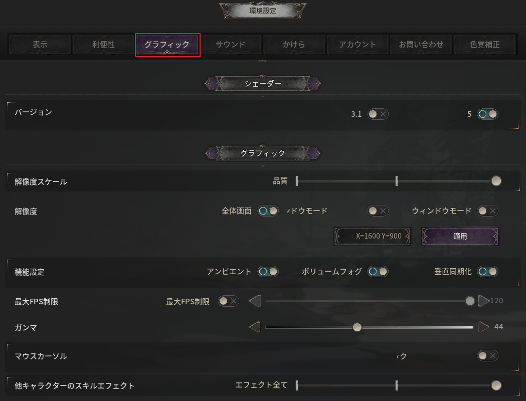 - ゲームのシェーダーバージョンを設定できます。