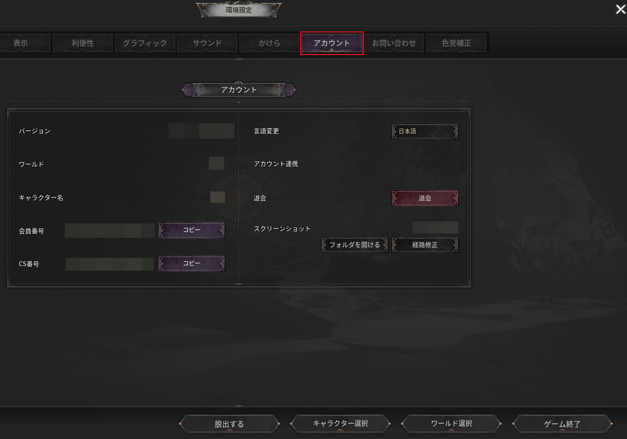 - 現在使用しているアカウントの会員番号を確認でき、