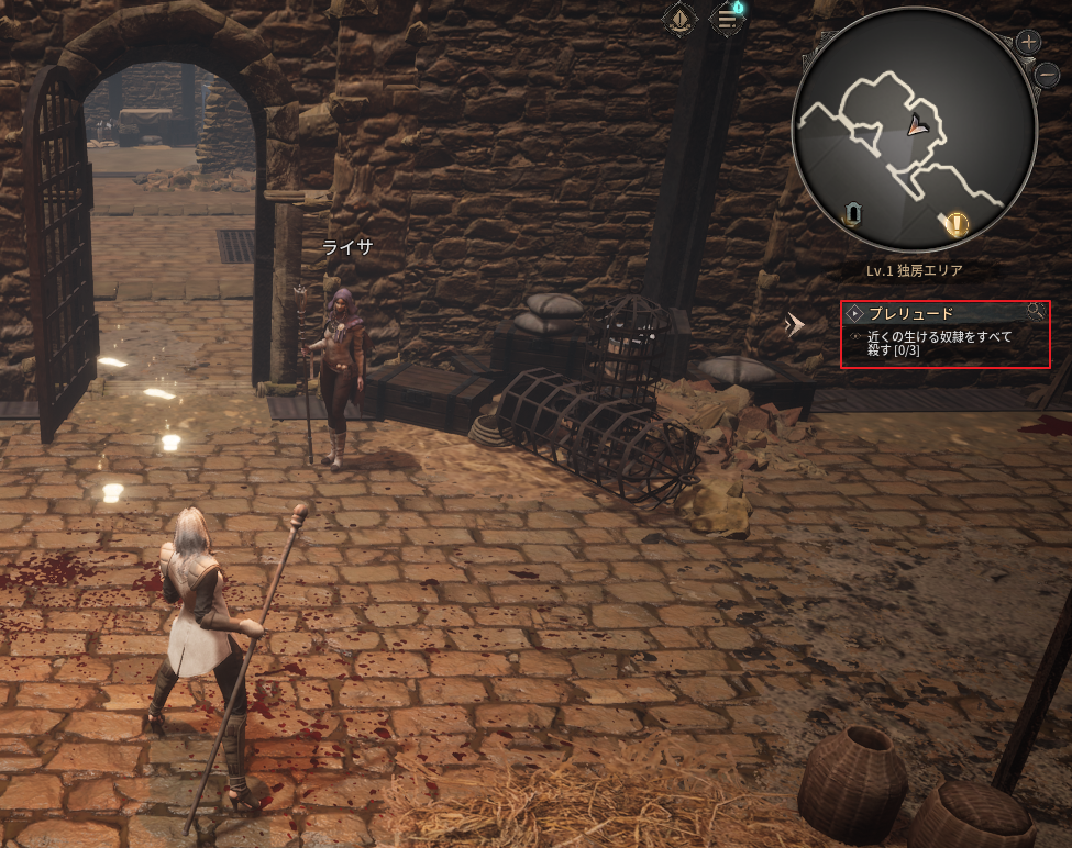 作成したキャラクターは、ゲーム開始と同時に NPC からクエストを受注します。