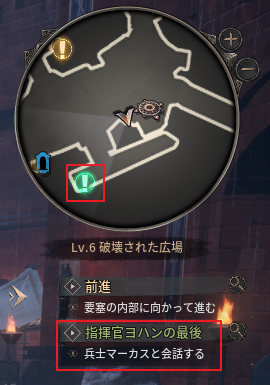 - クエストを達成して次のクエストを進行できる場合、または新たなクエストが受注可能な場合は、ミニマップ上のキャラクター周辺に「!」アイコンが表示されます。