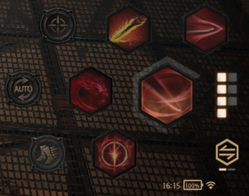 - 中央には、メインスキルおよびクイック移動ボタンが表示されます。