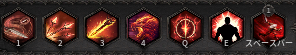 - 左側には、クイックスロットに設定されているスキルが表示されます。