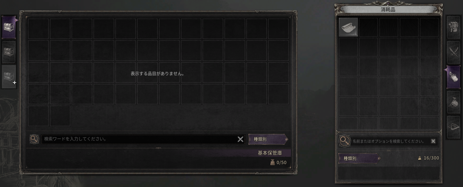 - アイテムはインベントリーだけでなく、保管庫にも保管できます。
