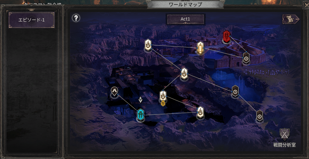 - アクト進行中は、各エリアの拠点からワールドマップを開くことができます。