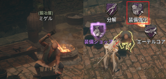 - 装備強化は、町にいる鍛冶屋NPCから行うことができます。