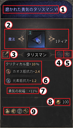 ① タリスマンの名称を確認できます。