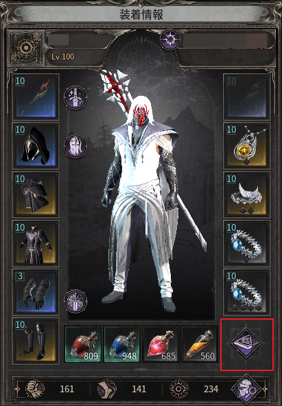 - タリスマンは、キャラクター情報画面右下(4番目のポーションスロット右側)にあるアイコンをクリックすると確認できます。