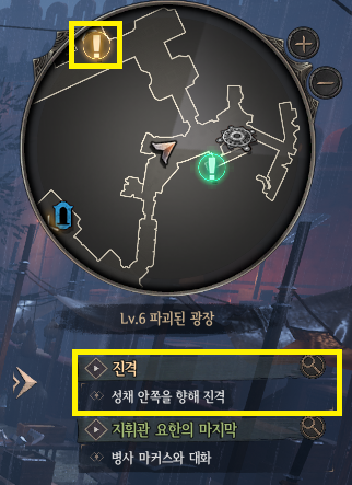 - 메인 퀘스트는 화면 오른쪽 미니맵과 퀘스트란에서 황금색으로 표시됩니다.