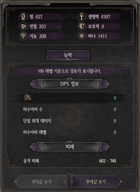 - DPS, 피해 등 캐릭터의 공격과 관련된 정보를 확인할 수 있습니다.