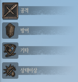 - 능력치는 유형별로 공격, 방어, 기타 및 상태이상의 정보를 확인할 수 있습니다.