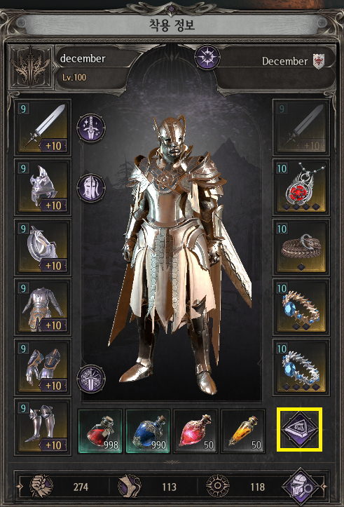 - 탈리스만은 캐릭터 정보란에서 오른쪽 하단 (4번째 물약 슬롯 오른쪽) 아이콘을 클릭하면 확인할 수 있습니다.