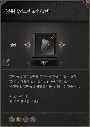 - 탈리스만 조각은 탈리스만을 분해 시 획득할 수 있습니다.