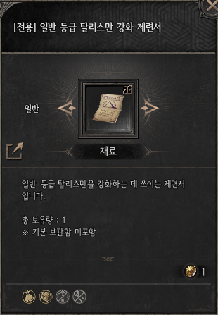 - 탈리스만 강화 제련서는 탈리스만을 분해 시 획득할 수 있습니다.