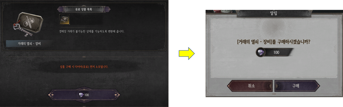 - 구매가 되었다면 유료 상점 상단에서 구매 확인 팝업이 등장합니다.