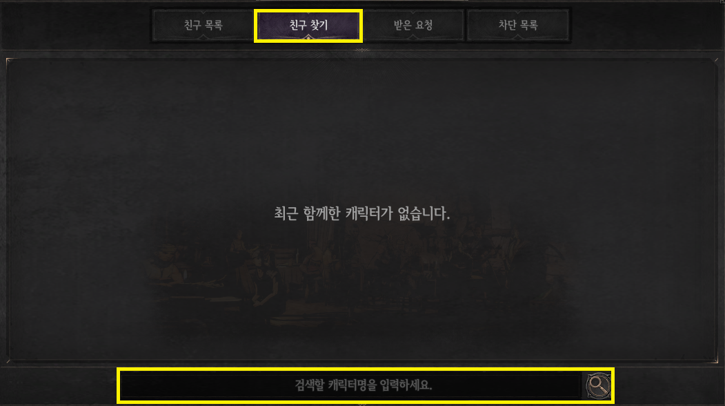 - 친구 찾기 탭에서는 아래 검색란에 유저 이름을 입력해 검색한 뒤, 친구 추가를 요청할 수 있습니다.