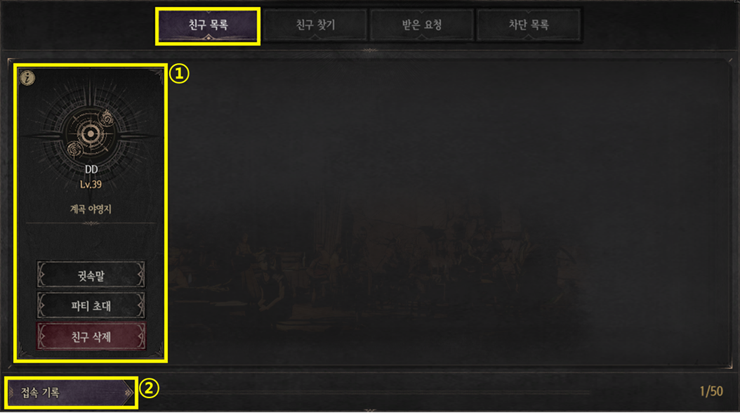 ① 목록에 등록되어 있는 친구의 현황 및 정보를 확인할 수 있습니다.