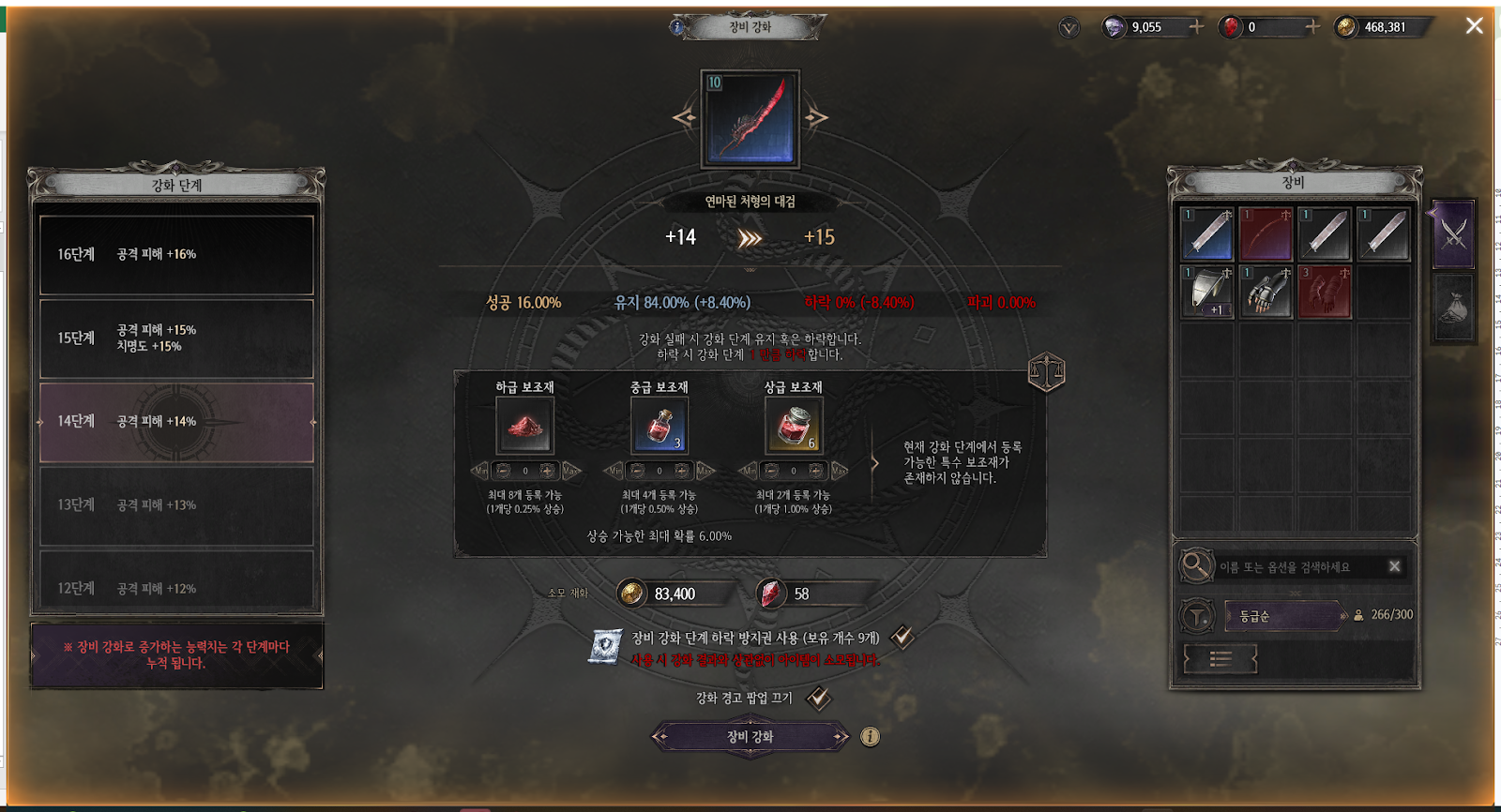 14. 장비 전승에 소모되는 재료와 골드가 완화됩니다.