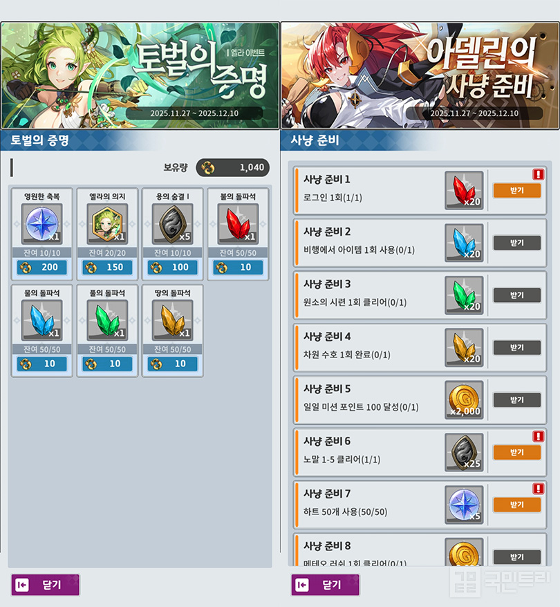 ▲ 게임 콘텐츠를 즐기기만 하면 보상 획득 (사진: 국민트리 촬영)