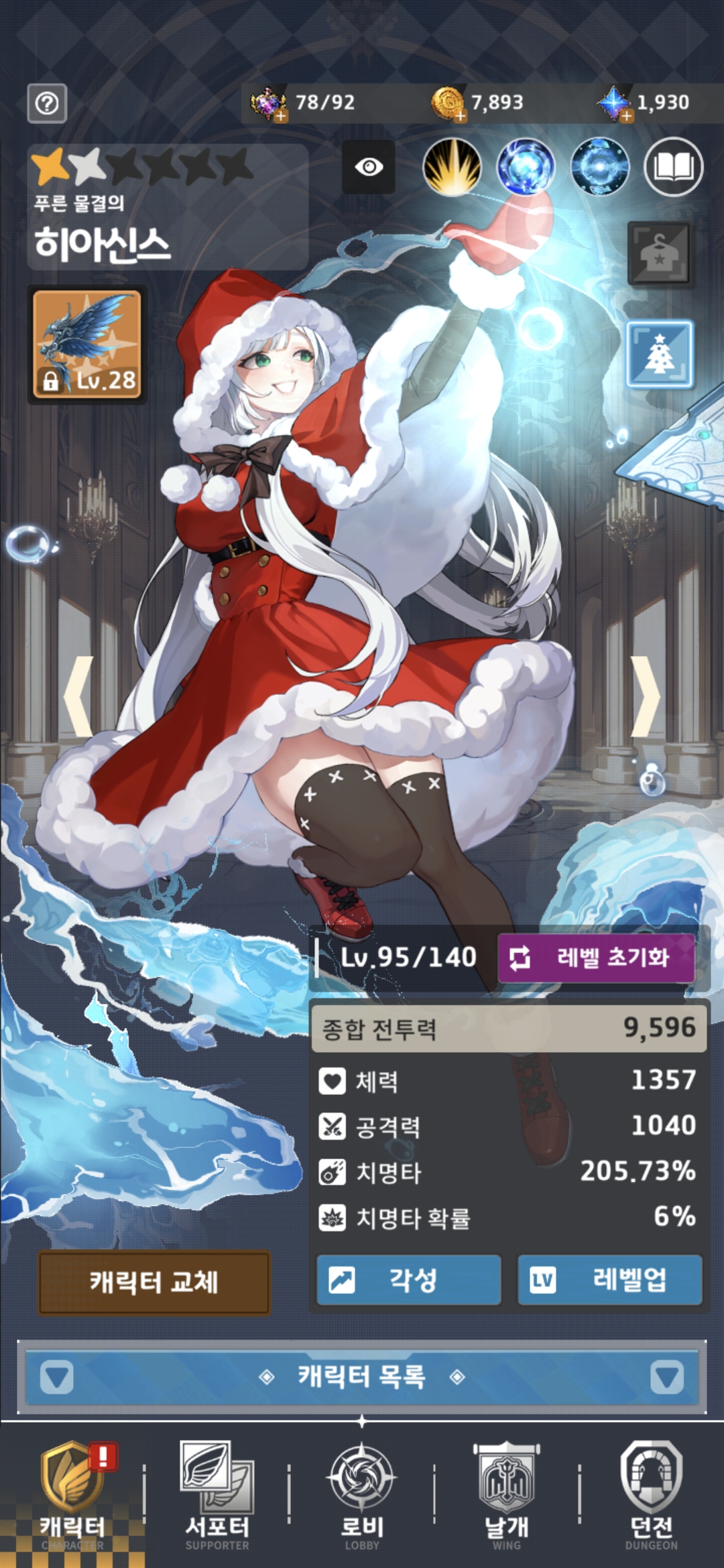 처음 접했을때 누굴 키울까 했다가 차가운 냉미녀 느낌이라 이 녀석으로 정했는데 신의 한수가 될 줄이야…과금은 월충전 하트와 스킨만 사고 이악물고 노가다 하는중입니다. 만렙까지 도전을 해볼 생각임…각성은 포기하고~
