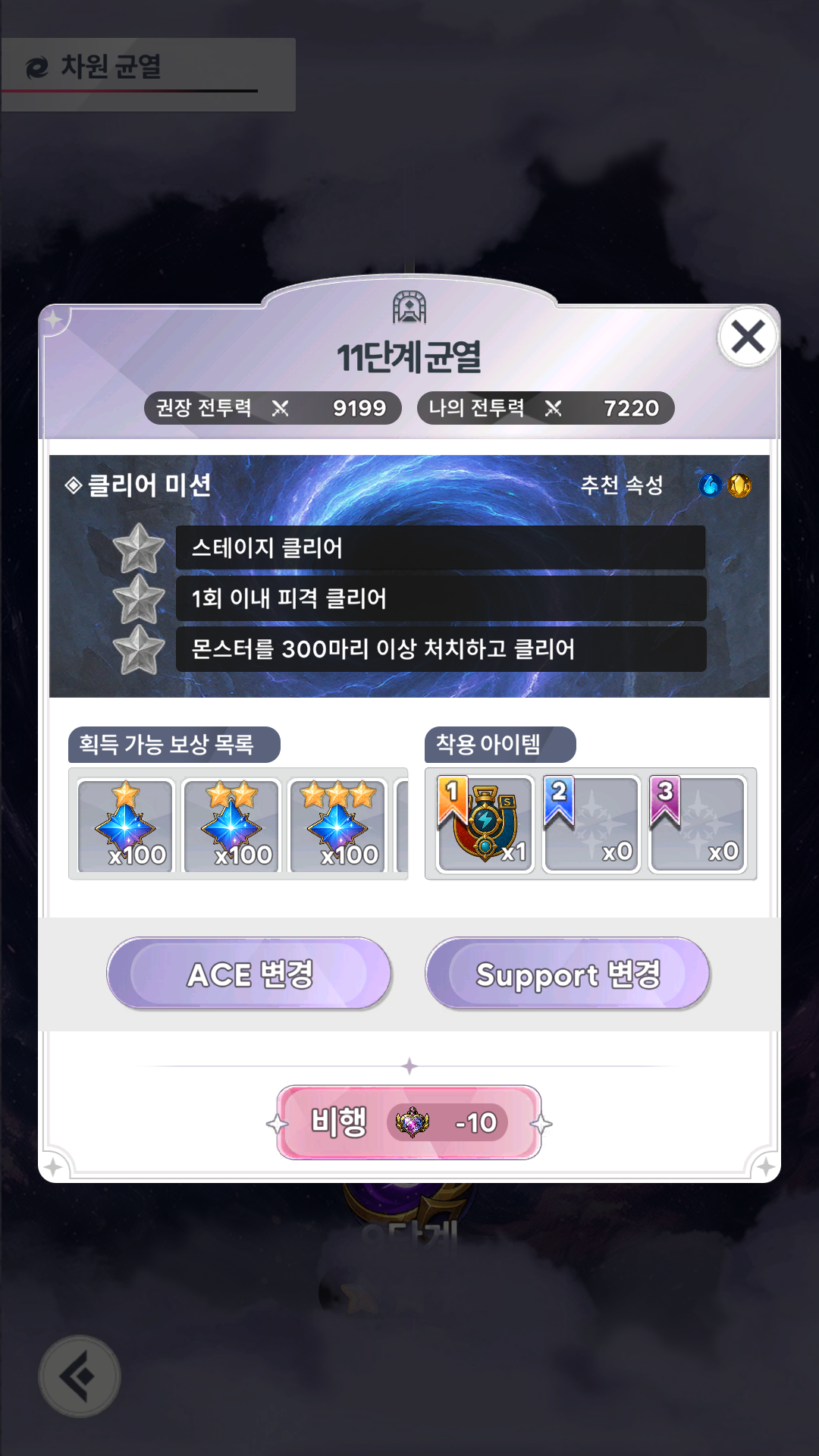 ⯎ 차원 균열 클리어 미션 조정