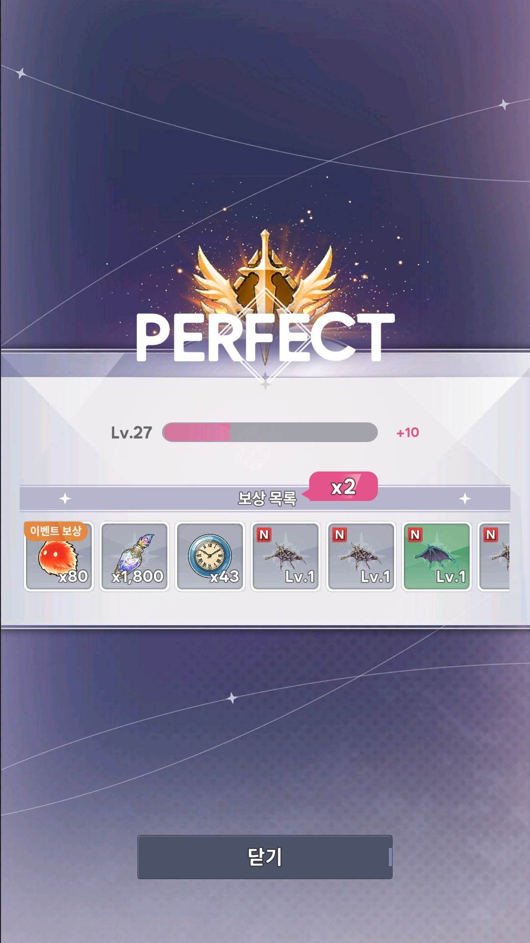 ⯌ 퍼펙트 클리어를 달성하면, 플레이 도중 획득한 모든 보상이 2배로 지급됩니다.