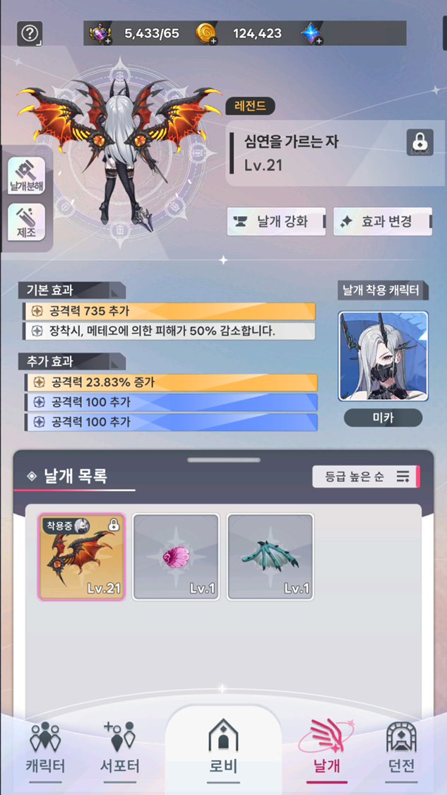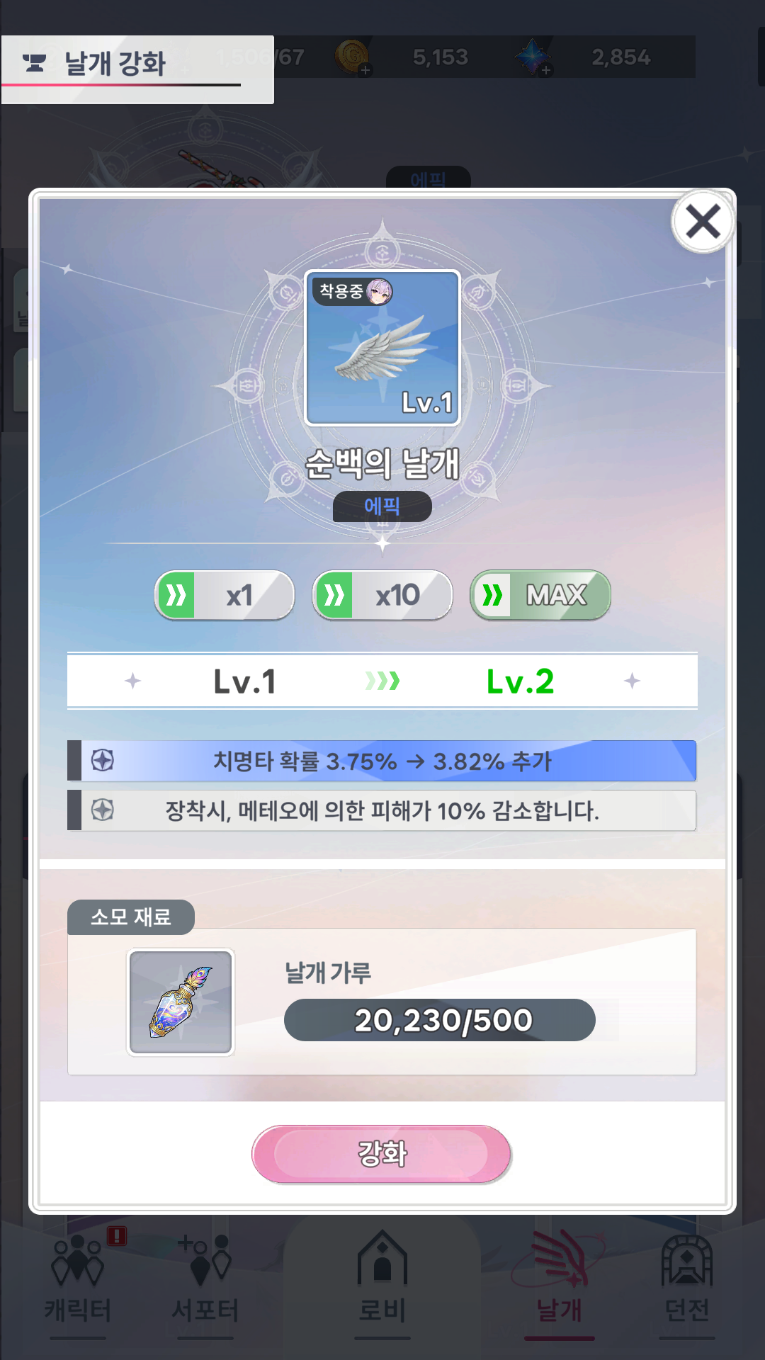 ⯌ 날개 강화 시, 원하는 레벨 업 수치를 지정할 수 있는 기능이 추가됩니다.