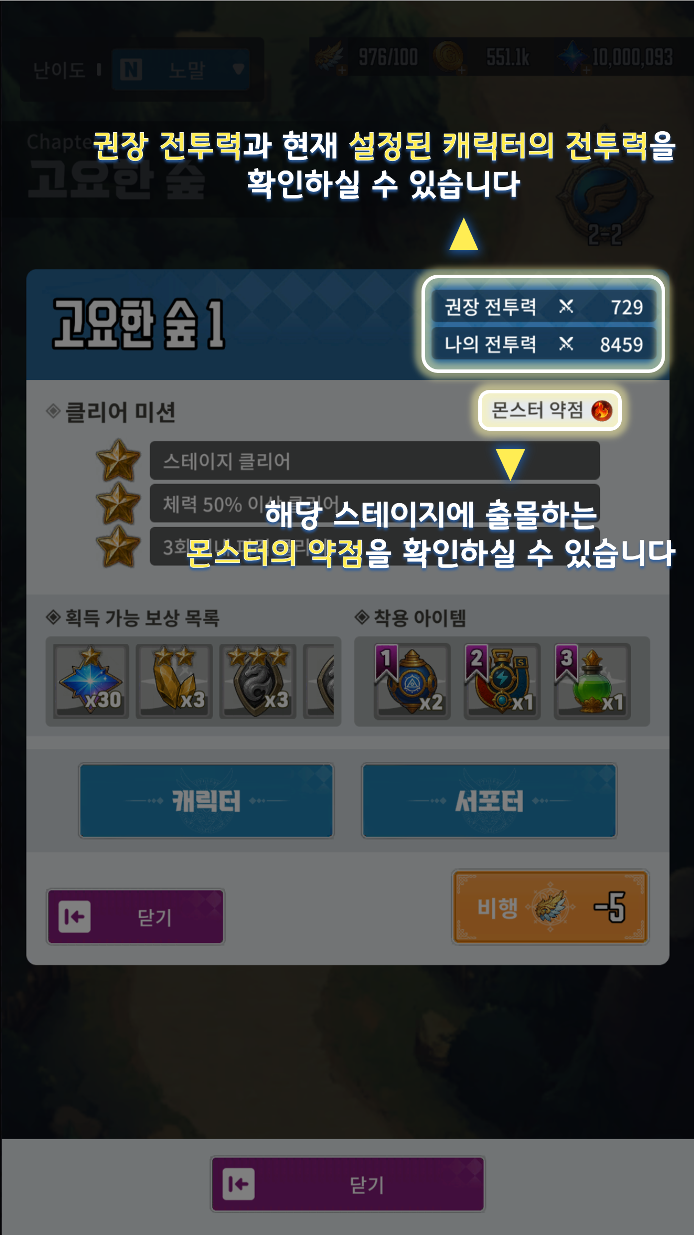 - 난이도가 상승할 수록 획득 보상 또한 상승하며, 권장 전투력이 대폭 상승합니다.